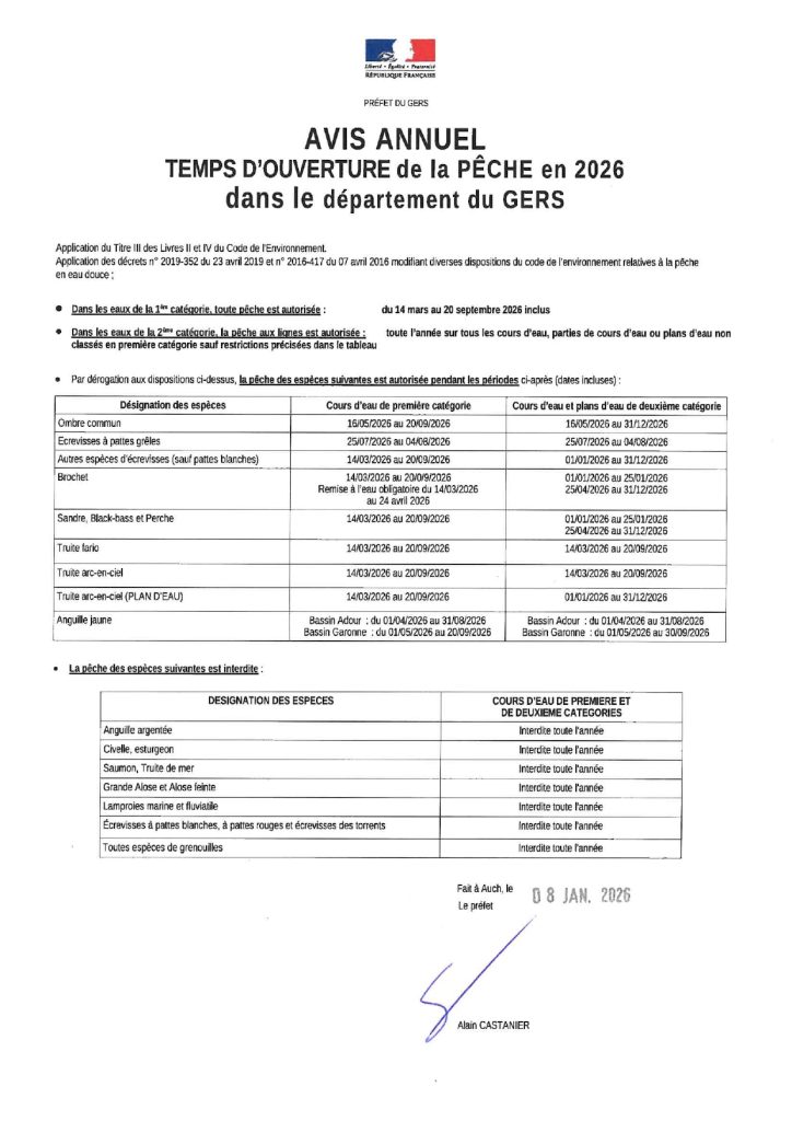 Temps d’ouverture de la pêche en 2026